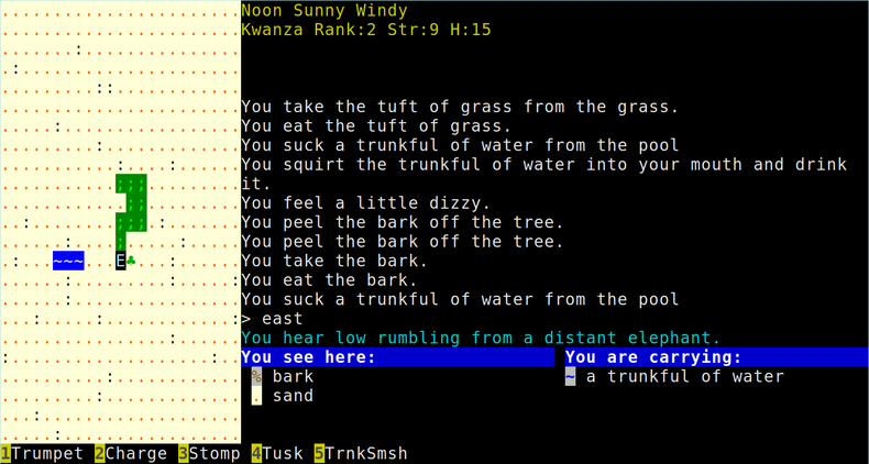 A roguelike game where you play the role of an African elephant trying to survive in a harsh wilderness.
